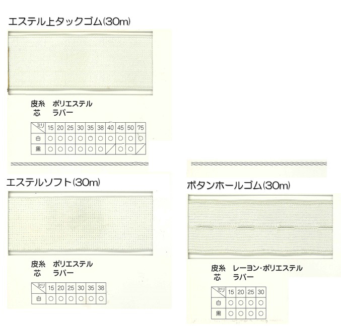各巾、タイプ、カラーの丸ゴムを多数取り扱っております。