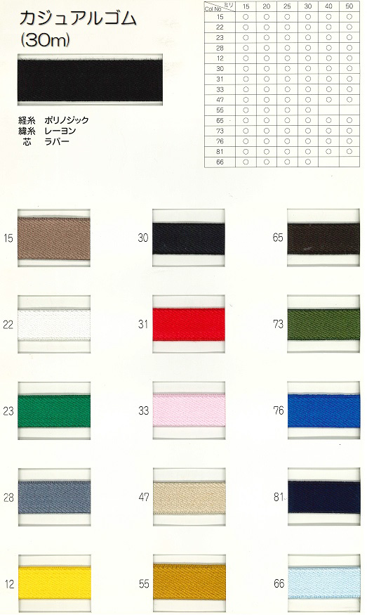 各巾、カラーのカジュアルゴムを多数取り扱っております。